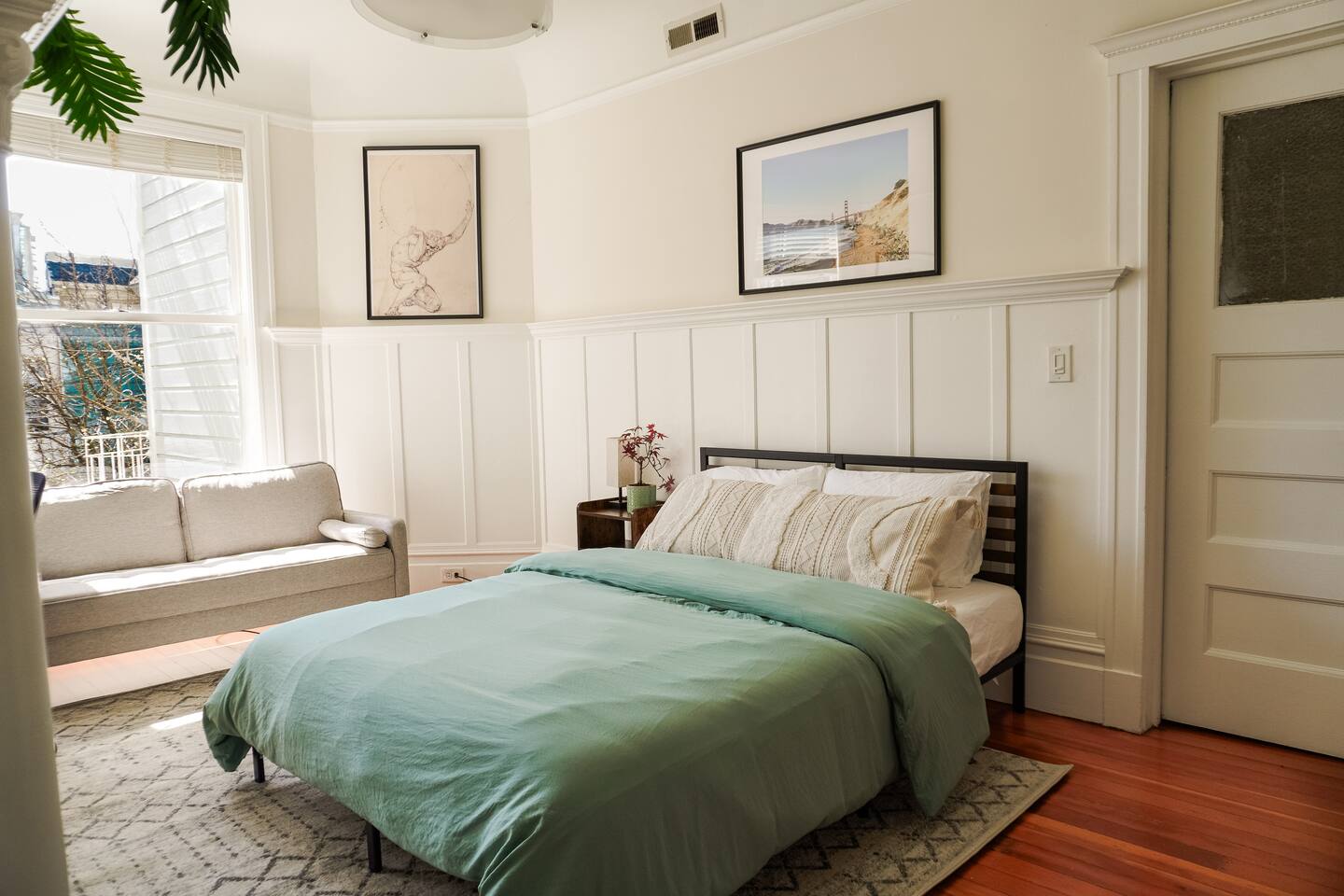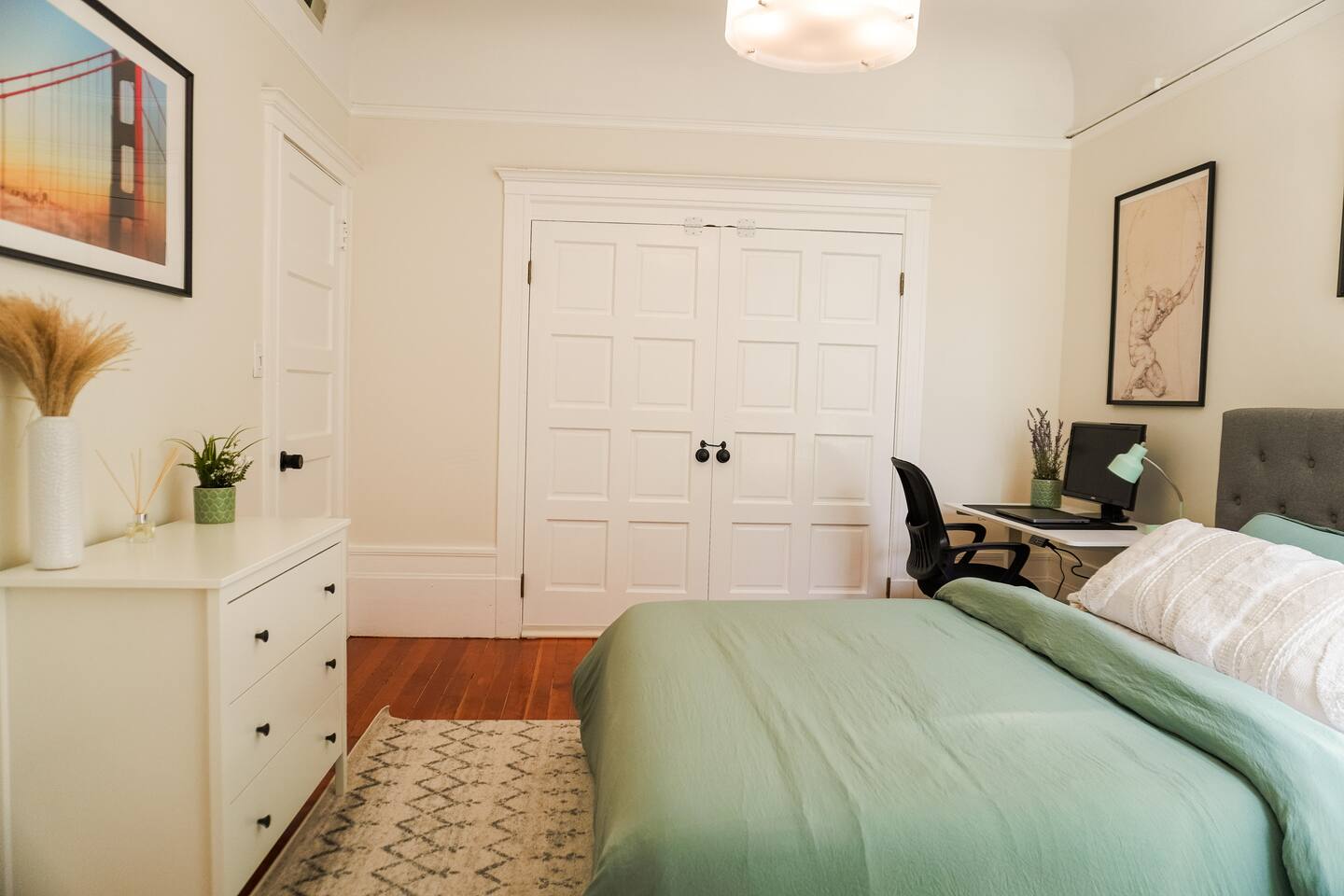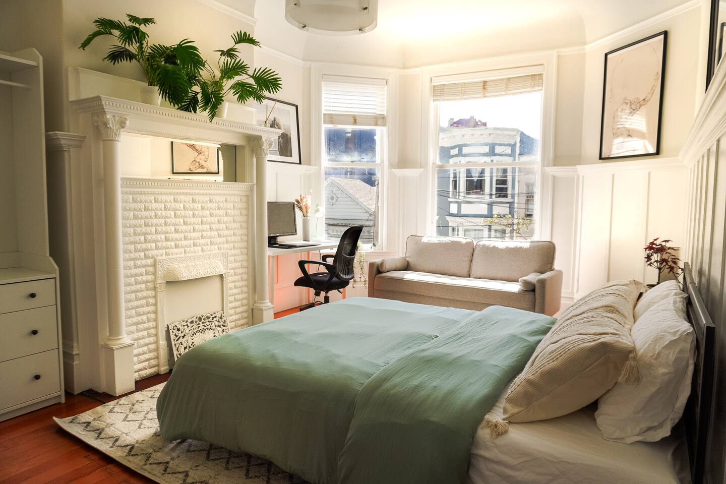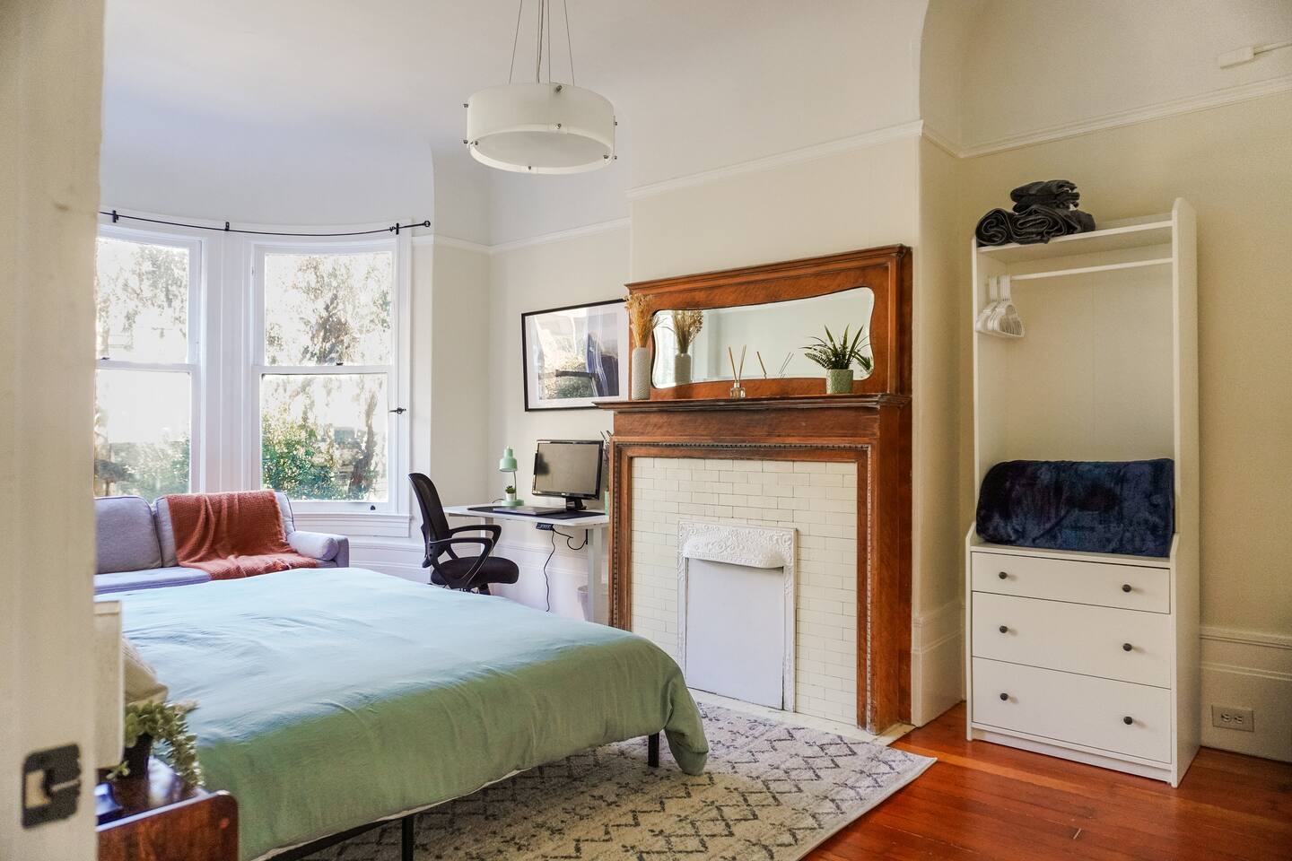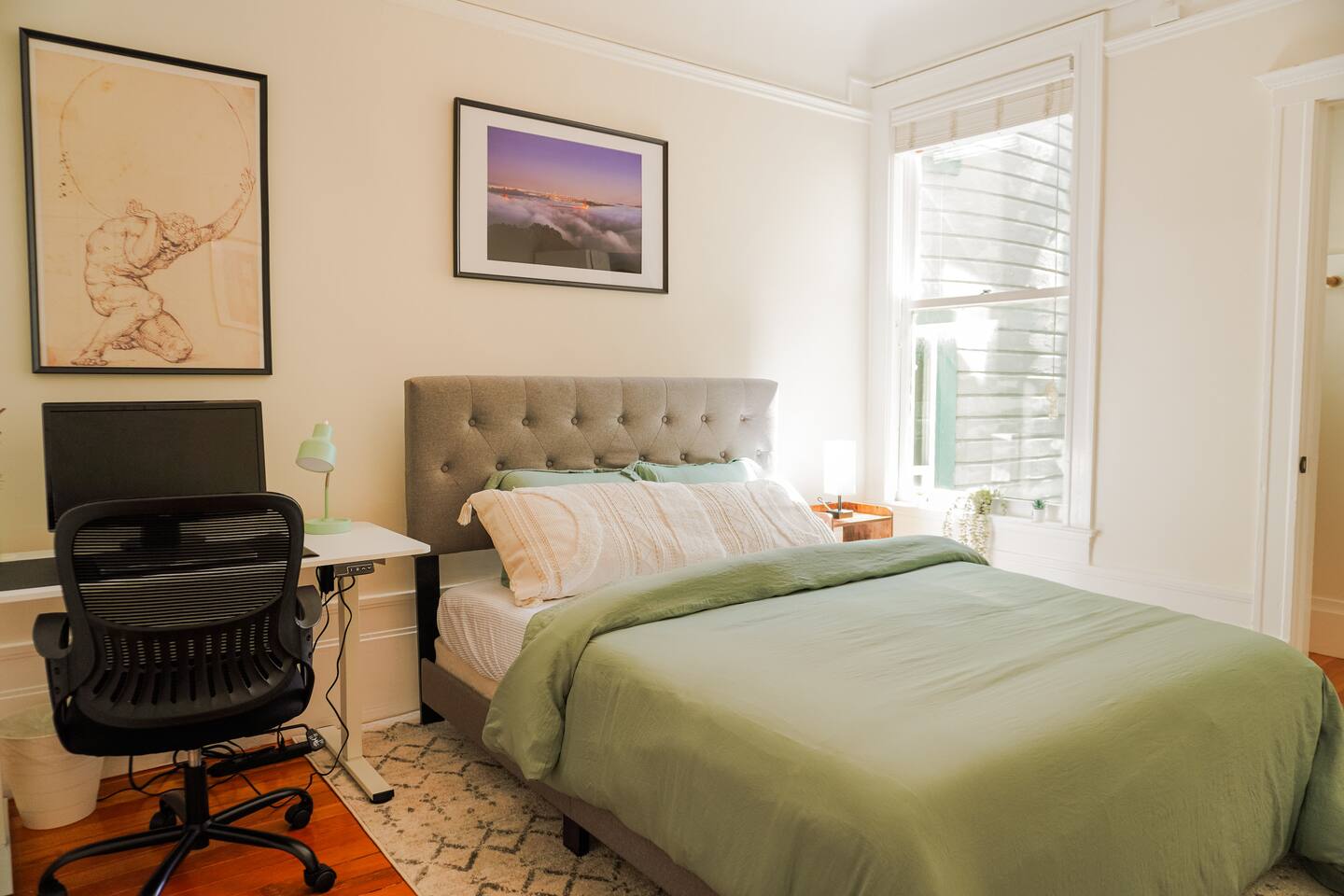 I enjoy getting to know new people by renting several private rooms in our Pacific Heights home. We are selective in who we rent to and have always had very respectful and welcoming guests. In addition to exclusive access to your room and private bathroom, you will also have access to spaces that are shared with the hosts and other guests, including our full kitchen and amazing rooftop deck, which features great views of the city and lots of succulents. The deck is the perfect spot to have lunch or just soak up the San Francisco sun in our hammock. Please note that to get to your room, you will need to climb 1 steep set of stairs with your luggage. Please consider whether this works for you. We do not have an elevator.