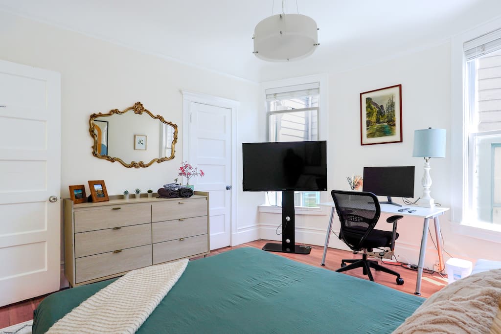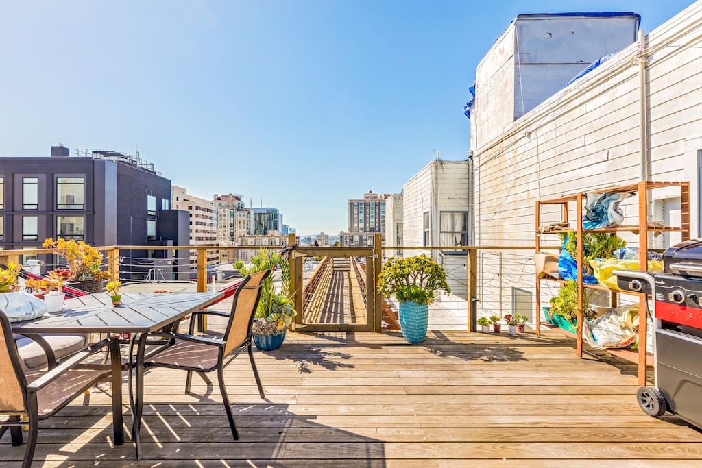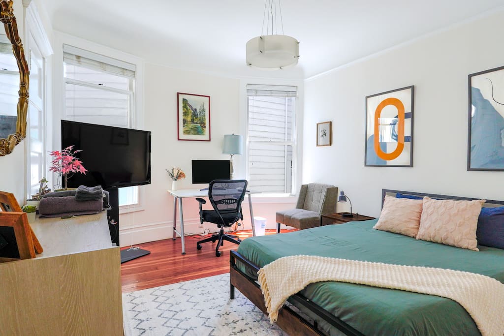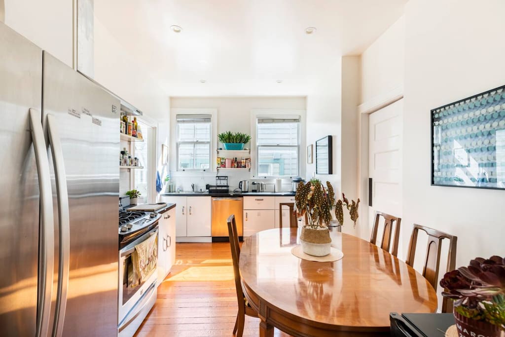 We’re excited to open our Pacific Heights home as a fully private, 9-bedroom entire-house reservation—perfect for groups, families, and long-term stays. This spacious residence offers plenty of room to spread out while still feeling warm, welcoming, and home-like. As guests of the entire home, you’ll enjoy exclusive access to all 9 bedrooms, multiple living areas, and full access to the kitchen and the rooftop deck. The roofdeck features stunning city views, comfortable seating, and plenty of natural sunlight—an ideal spot for meals, remote work, or simply relaxing in the fresh San Francisco air. Please note that the home includes one steep flight of stairs leading up to the main level and bedrooms. There is no elevator, so kindly consider this when planning your stay.