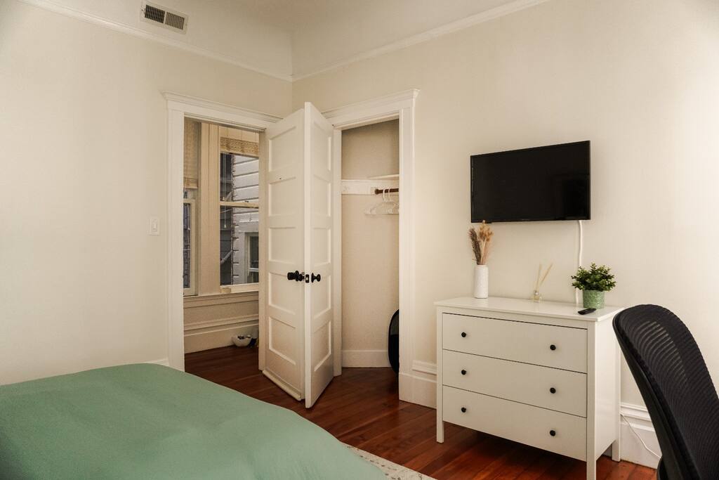 I enjoy getting to know new people by renting several private rooms in our Pacific Heights home. We are selective in who we rent to and have always had very respectful and welcoming guests. In addition to exclusive access to your room and private bathroom, you will also have access to spaces that are shared with the hosts and other guests, including our full kitchen and amazing rooftop deck, which features great views of the city and lots of succulents. The deck is the perfect spot to have lunch or just soak up the San Francisco sun in our hammock. Please note that to get to your room, you will need to climb 1 steep set of stairs with your luggage. Please consider whether this works for you. We do not have an elevator.